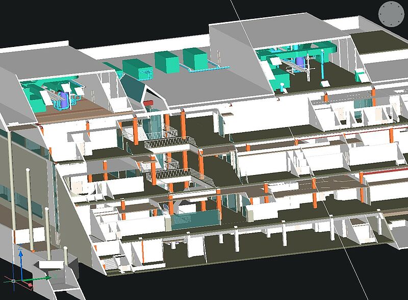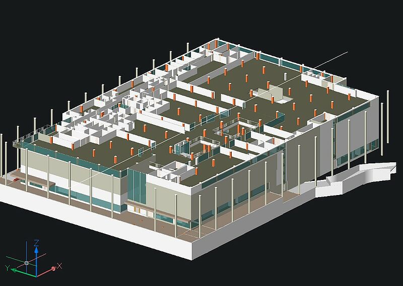 Sellel teostamiseks skaneerisime laserskanneriga kogu hoone nii seest kui väljast, koostasime hoone 3D punktipilve ning selle põhjal Autodesk Revit keskkonnas 3D mudeli.