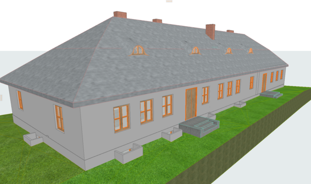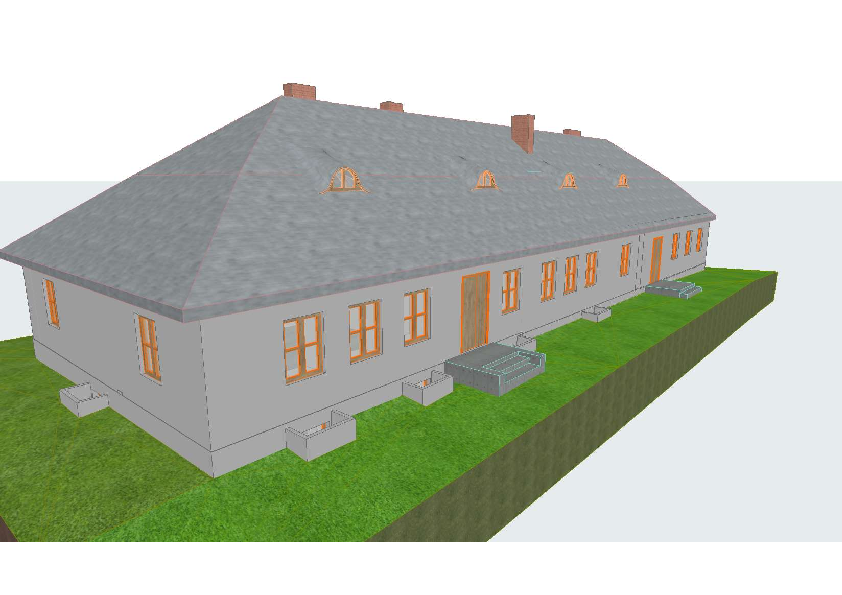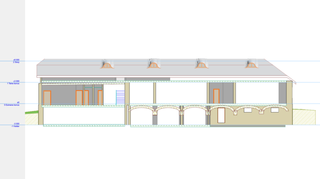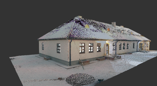 Sellel teostamiseks skaneerisime laserskanneriga kogu hoone nii seest kui väljast, koostasime hoone 3D punktipilve ning selle põhjal Archicad'is 3D mudeli.
